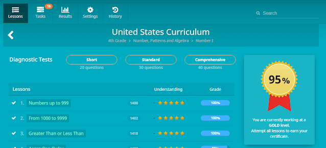 Each student profile has access to all levels of work. This makes this program easy for supplementing in a difficult area. It also makes it great for using mid-year. Especially in the event that you find yourself homeschooling unexpectedly or you're looking for extra help outside of the classroom, this program allows you to start wherever you need. The lessons and criteria for each grade level are clearly organized so that you can use this as a primary math resource and go from beginning to end. In that case, the student simply begins with the first video lesson of their grade, complete questions afterwards and receive immediate feedback towards their level of mastery. The number of questions can be adjusted which is helpful depending on how much time you want spent on the subject. The student and parent can clearly see scores and areas of difficulty for further attention. Divided up by the week and semester, there are available review questions in pdf or online format that can be assigned or utilized offline like a test or simply supplemental to other programs. This is especially helpful when you are simply wanted to check understanding in a different format than what you might be using every day.