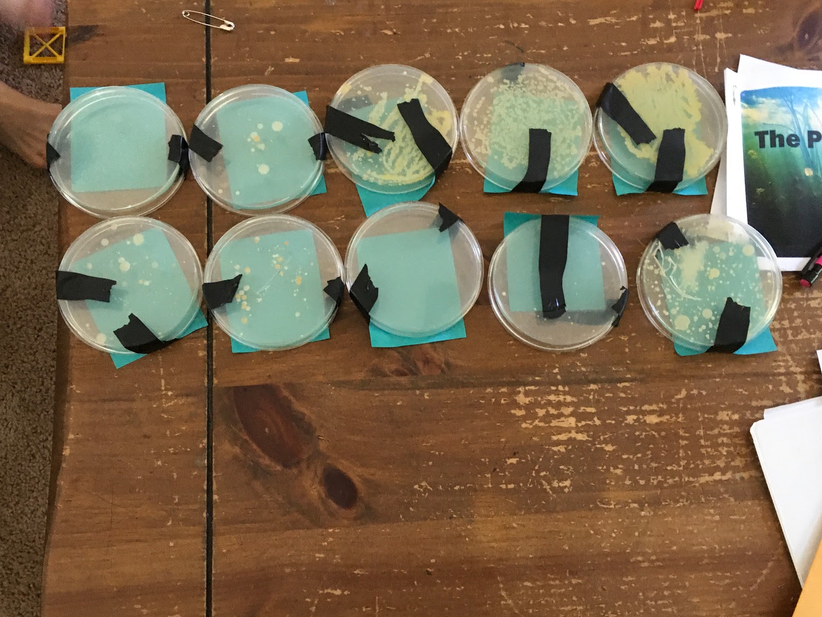 I bought a set of agar plates (petri dishes with the substrate already prepared) to do the recommended bacteria growing experiment. It is partly fun and partly gross watching the bacteria grow that we collected from various locations.