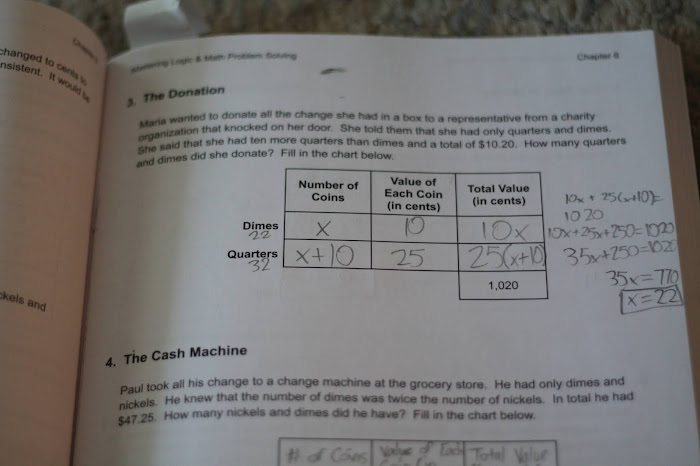 JP: I think it might be somewhere in between, like these coin problems were in my Algebra 2 course, these types of problems were in it, but it wasn't coin problems, it was "find the kayaker's speed going upstream or downstream" or whatever.
