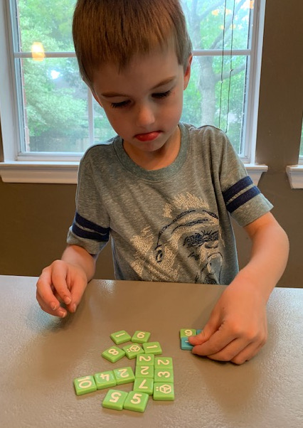 Mobi Kids is simple, fun, and helps children reinforce math skills while playing. Children will naturally improve their addition and subtraction math skills while playing this game and I'm all for that. Older kids can really race each other... F starting his grid.