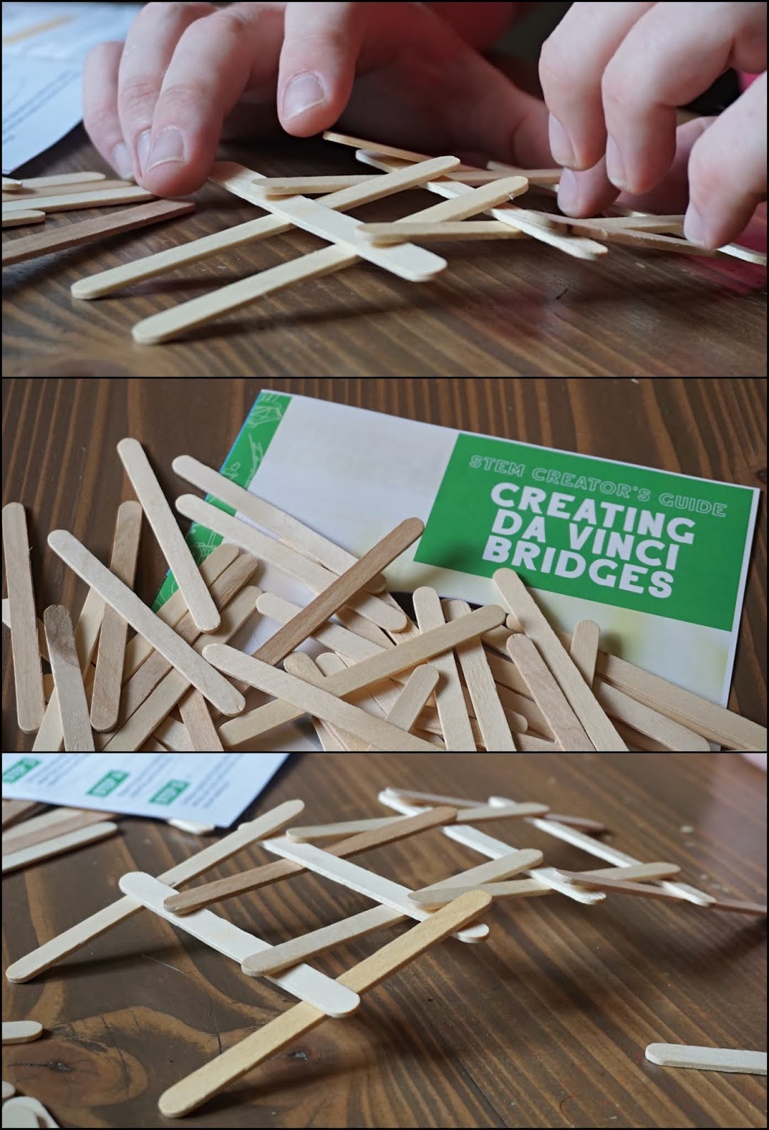 We did not have the best of luck with the Da Vinci bridge project, unfortunately. That was one set of instructions that I found confusing. Even my engineer husband who easily understands things like this had a difficult time getting the popsicle sticks to stay together long enough to form a long bridge. That is one that we will definitely have to try again as a family.