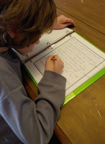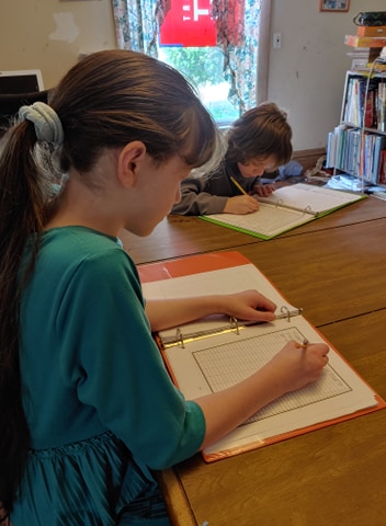 I discovered that they can only work on a few lines at a time before their writing gets messy. Especially because I will have them go and redo it if it isn't to my satisfaction, so we are taking longer than I thought we would to get through the handwriting practice.