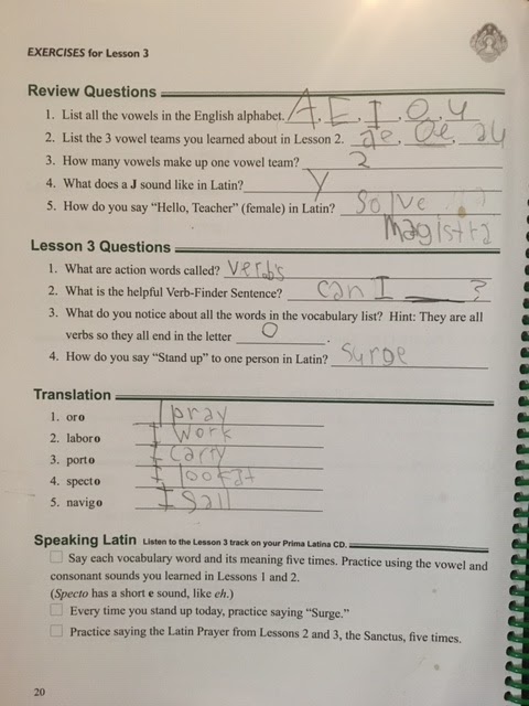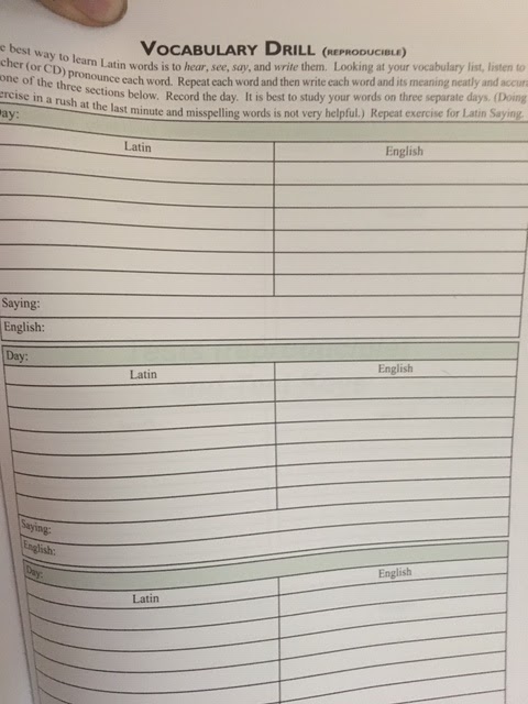 - Derivatives (learning English words based on the 5 new Latin vocabulary words) - it is recommended to skip this with younger students but we found it kind of fun and I didn't dwell on it.