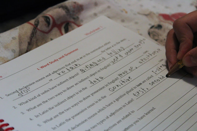 Being upfront and honest here. Ashleigh surpassed my knowledge of Latin when she finished with Latina Christiana. Because of this, I am extremely thankful that the Memoria Press Complete Latin sets contain everything needed for her to independently study, because at this point in the game, I'm not a whole lot of help for her.