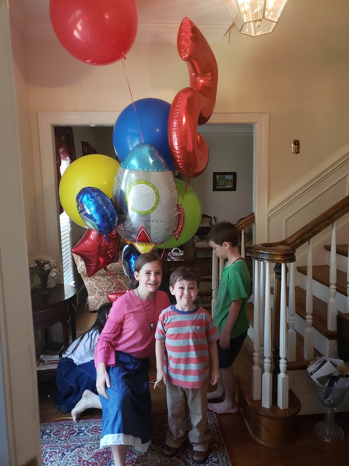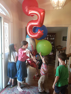 In anticipation of Thomas's birthday on Sunday, a big bouquet of balloons arrived from his aunt and uncle!
