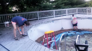 - Open our pool. We got to work on this one yesterday, actually. We decided a couple weeks ago that since none of us were doing big vacations this year, it might be worth our while to see if we can clean up our unused pool area and see if we can get at least one more year out of our slightly redneck set-up! We worked on cleaning out the pool area and pruning back the trees around the deck and that sort of thing yesterday. (Background - we used to have an above-ground pool, but the liner was in such rough shape several years ago that it wasn't worth repairing any more and it wasn't in the budget to get an entire new pool liner. So we put a large inflatable pool inside the deck area and that worked great for a couple of years until we got lazy and let that go.)