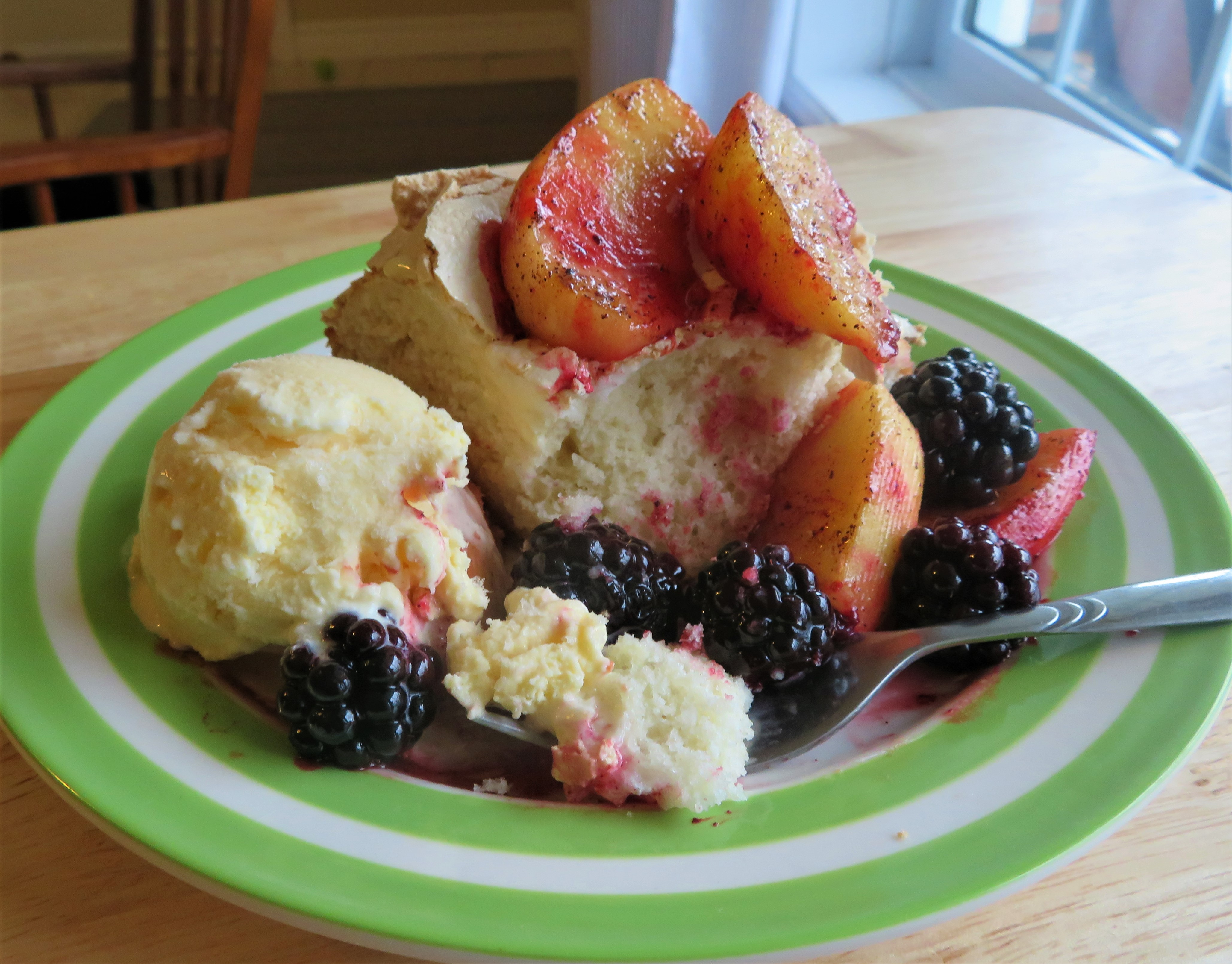 This autumn shortcake is a beautiful dessert, with a quick and easy biscuit base topped with a meringue topping prior to baking. Served with lush blackberries and apples spooned over top, a scoop of ice cream or a dollop of whipped cream goes very nicely with this dessert!