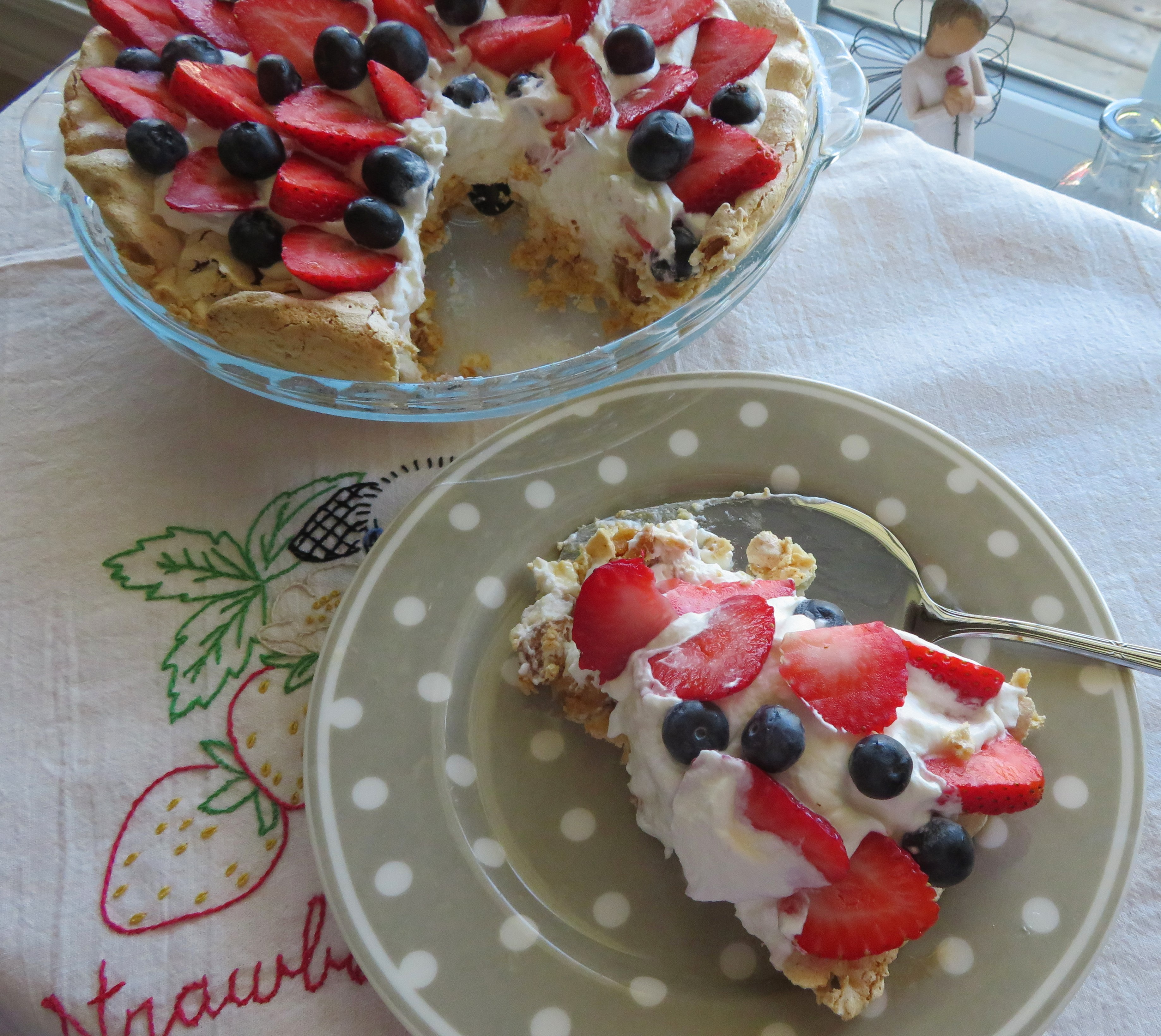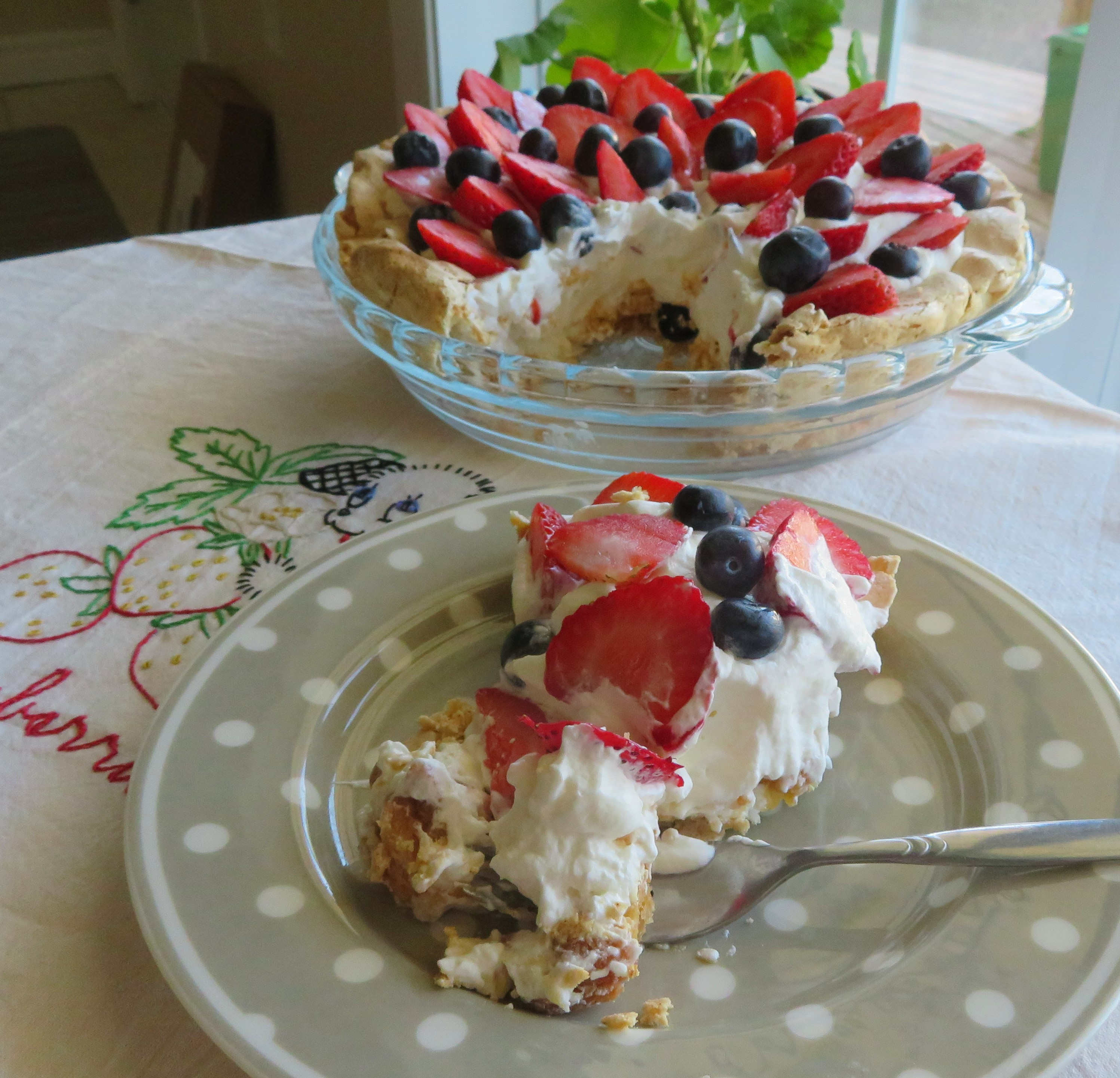 Berry Angel Pie! What you have here is a really light dessert, which is perfect to serve after a heavy meal or when you have been BBQ-ing.