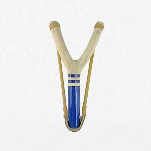We're all about the latest tech, but sometimes, it's great to go old-school. And nothing is more old-school than this slingshot, handmade in San Francisco from forked tree branches and kitted out with a leather projectile pouch. Each is one of a kind. And each is gonna get dad outdoors and off his laptop.