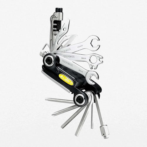 Riding a bike forces you to learn how to be handy. This two-piece multi-tool makes roadside repairs easier by packing 31 tools into a tidy package that you can stash in a seat pack or backpack. Work on single or multi-speed chains, tighten just about any bolt, swap out pedals, and fix flat tires. Even pop a beer after a ride with the bottle opener.