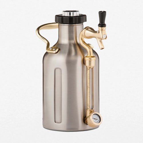 So if he's into his microbrews, he can now enjoy them at home with this stunner of a growler. It keeps beer crisp, cold and carbonated, and has a bar-style tap that lets him dispense the hefeweizen in style. It keeps it cold. It keeps if fresh. It keeps it delicious. And he can refill at his favorite brewery.