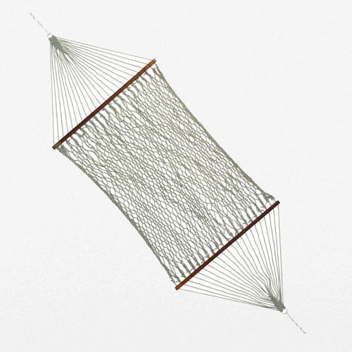 Just looking at this hammock drops your diastolic blood pressure. String this version up between two trees, or on a stand, and the generous 55-x-82-inch hammock will cradle him with an open back that prevents sweating in the summer heat. The cord is as soft as cotton, but the synthetic blend inhibits discoloration in the sun, is anti-microbial, and easy to clean with soap and water when the kids spill watermelon on it.