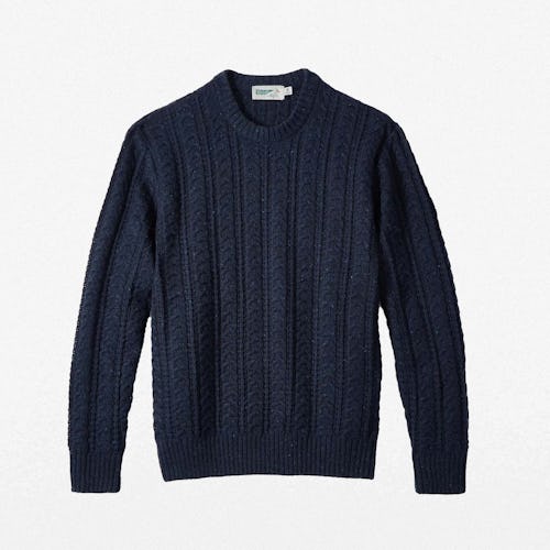 It's very nearly sweater weather. And that means it's time for this impeccable sweater, made from from recycled plastic bottles and oyster shells. He'll be just warm enough, without ever overheating. As for the fit: It's true to size, without any unnecessary bulk.