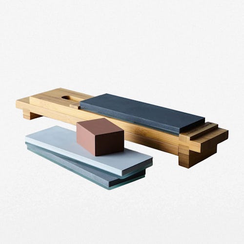 Bob Kramer, if you missed it, is widely considered the most gifted 'knifesmith' working today. Which is why a sharpener created by him will go the distance, and look fine doing it. This set comes with an instructional DVD featuring Bob himself as he walks you through how to use the sharpening stone for edge repairs, another one for fine sharpening, yet another one for finishing and polishing, and the bamboo sink bridge to make everything safe and easy.