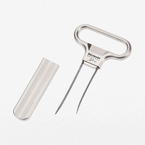 Westmark, a renowned German brand, makes barware that lasts much, much longer than that bottle of chianti he's been saving. Take this cork puller. It removes the cork without damaging the cask or bottle, and the handle doubles as a bottle opener. Smart, solid, and sleek. We approve.