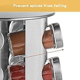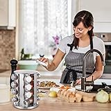 DEFWAY - 360degree rotating design the spice rack organiser is designed with a rotating chassis When you use it you can quickly rotate the spice rack and find the seasoning jar you need Antisprinkling when the spice jar is placed in the revolving spice rack the mouth of the spice jar will be inclined upwards to prevent the seasoning in the jar from falling 16jars defways spices rack contains 16 130ml seasoning tanks for daily use of salt pepper paprika curry and other spices note spices are not included