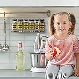 Ultimate Hostess - 4 single tier racks use these racks in your kitchen to help keep spices organized and accessible or in the garage bathroom closet craft room under the sink or anywhere organization is key New size means less rattling these racks are redesigned to keep spice jars more snug inside the rack which means less rattling when opening cabinet or closet doors Each rack measures 25 inches in depth 2 inches usable space and 25 inches in height and 115 inches in length Free up room in your drawer by utilizing these super functional and useful bottle holders Black iron finish these racks are made of a sturdy material that will withstand the test of time unlike plastic with a black iron finish They are stylish and functional and a great organizer
