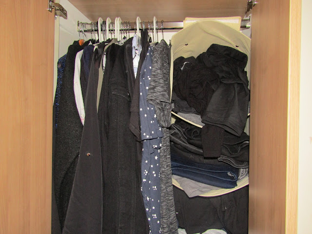 Inside, it's not very big and has no shelves so I have one of those hanging shelves which is really handr. I just keep my clothes in here. It doesn't look very neat but honestly this is a reality of how my wardrobe looks most of the time.