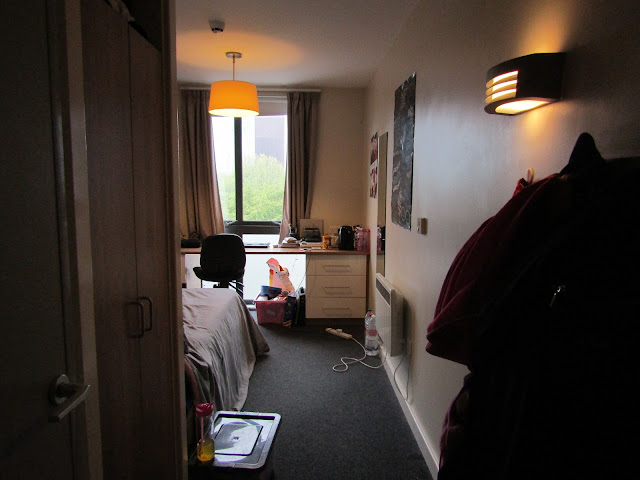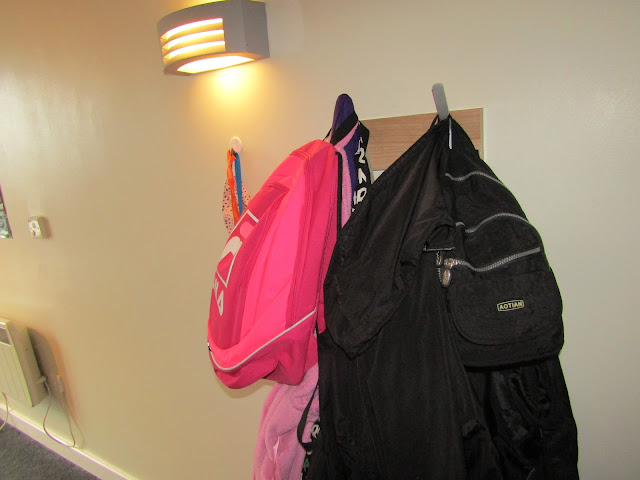 This is what you see when you enter my bedroom. It's not a big room but it's big enough for me. To the right as you enter is two hooks (the handiest thing to have in a uni bedroom) and I just hang my everyday bags, coats and dressing gown. It's just very handy to have. If you saw my first uni room tour you'll know there was no hooks like this in that room so I was very happy with this.