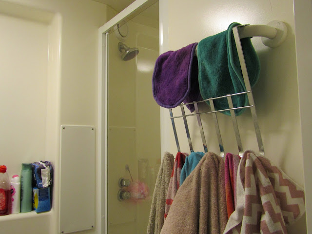 There's also a shower which is honestly the best shower I've ever had. It's so powerful I love it. There's also this towel rack which I hung over the door hooks on it and it's where I keep my towels, shower cap and face cloths. It's very handy to have especially when I get out of the shower and my towels are literally right there.
