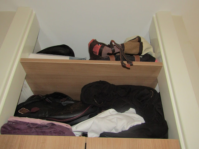 Underneath my coats and keys I have my everyday shoes and slippers. Again just handy and easy to put on when I go out. I also highly recommend having slippers in a uni room because you never really know who's feet have been on the floor so slippers are a good thing to have.